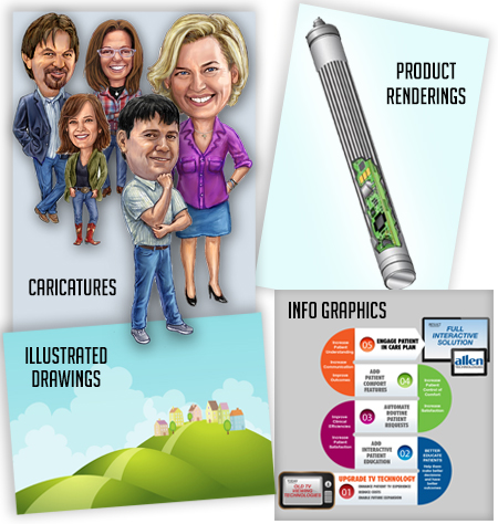Custom Illustrated Caricatures, Product Renderings, Drawings and Infographics