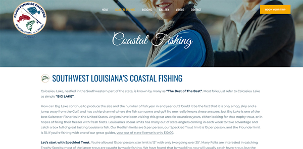 Cajun Paradise Charters - Custom Website Design with Online Booking Capabilities / Site Management
