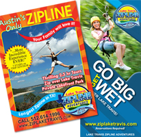 Lake Travis Zipline Adventures Cinema Ad Creation, Marketing Brochures and Collateral, Gift Cards, Logo, QR Codes, Business Cards, Table Toppers and Magazine Ads